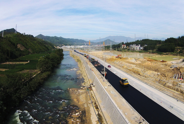 近日,省级重点工程连直线云峰段公路沥青路面开工浇筑,路面基础工程可在12月前完成,预计整体工程将于年底全面完工。届时,云峰路段将以畅捷、安全、质优的特性喜迎元旦、春运的到来。图为施工中的连直线。