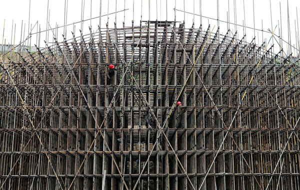 东桥路工程项目进展顺利,目前,工程开挖外运总土方量已完成70%,村道扶臂式挡墙施工、桥梁支模架搭设等也接近尾声,该工程全长1102.063米,工程的建设将有效完善区域交通网络,提高城市路网密度。图为工人在搭建桥梁支模架。