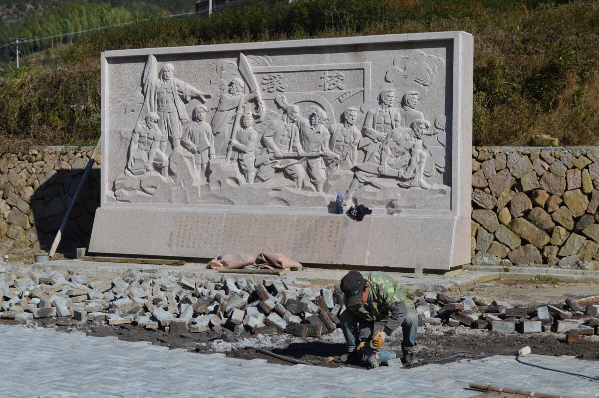 去年开始,金竹镇梭溪塘岭村抓紧开展历史文化村落建设,对村中的古建筑保护点进行整修。图为工作人员正为其中一处古建筑保护点——“梭溪庙”前的路面铺设仿古水泥砖。