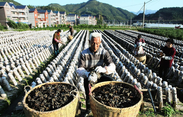 昨日,在妙高街道东峰村村民蓝军武种植的黑木耳基地里,20000多筒黑木耳进入采摘期,预计产值达到13万元。