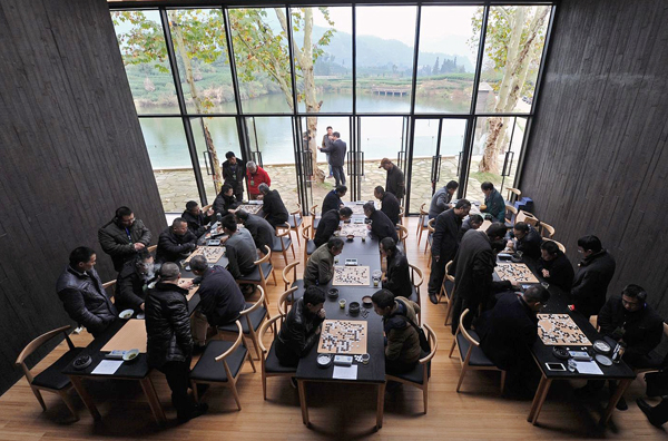 近日,“大木山骑行茶园杯”全市首届围棋团体联赛在松阳举行,全市共有十支代表队50余名围棋选手参加比赛。最后,我县代表队以27胜局数赢得本次团体赛冠军。图为比赛现场。