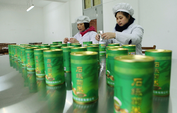 昨日,石练菊米有限公司车间里,工人在包装菊米。石练菊米是我县的著名农特产品,其优良品质、多功能的保健作用受到广大消费者的喜爱,在2015浙江农博会优质产品评选中,石练菊米荣获金奖。
