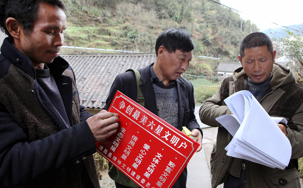 近日,王村口镇桥东村开展“六星文明户”评选活动,通过宣传发动、建立组织、农户自评、村组联评、张榜公示等程序,扎实开展评选活动。图为村干部给文明户上牌。