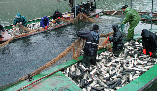 连日来,在乌溪江湖山库区,养殖公司工人进行冬季捕捞。产自湖山库区的原生态有机鳙鱼颇受市场青睐,每公斤售价达30余元,主要销往杭州、诸暨、深圳等地。据悉,今年年捕捞量达到20多万公斤。