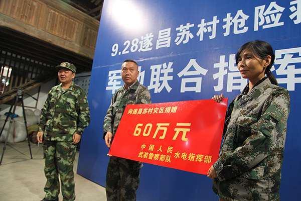 本网10月11日讯(记者 王海军)昨日,在紧张的抢险救援间隙,武警水电指挥部向灾区捐款60万元,省消防总队向灾区捐献30万元重建专项资金,用于重建美好家园。