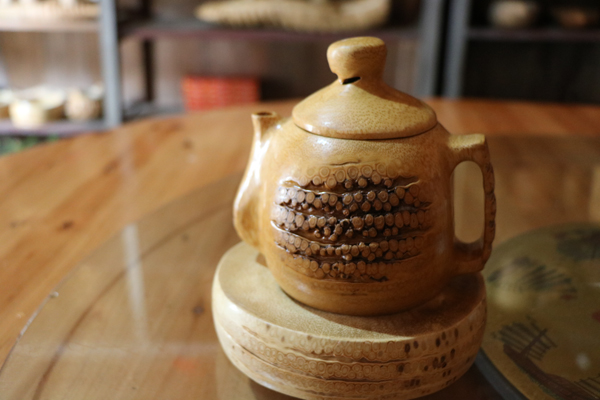 “竹雕技艺对竹子也有要求,一般要选取圆润、厚实的竹子,五年以上的竹子是最佳的。”罗时德拿着毛竹根部制成的茶壶得意洋洋地向记者展示着,“这可是我最得意、最喜欢的一件竹工艺品啦。”