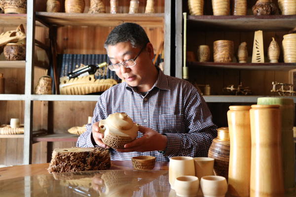 酒架、自行车、笔筒、茶叶罐、烟灰缸……一个个原本烂在土里或者当柴火烧的竹根、竹废料经过“转型”也都成了精美的工艺品,全身都变成了宝。
