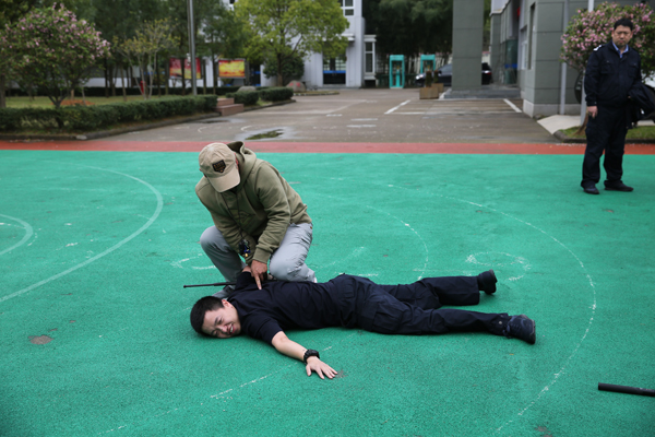 “持棍手要紧贴他的大臂,不要留过多距离……”训练现场,吴军详细讲解了伸缩警棍的正确使用方法及切臂控制、别臂控制、锁腿等六个防控技术模块的动作要领和注意要点,并组织法警实战训练,现场进行一对一纠正指导,参训法警纷纷表示获益良多。